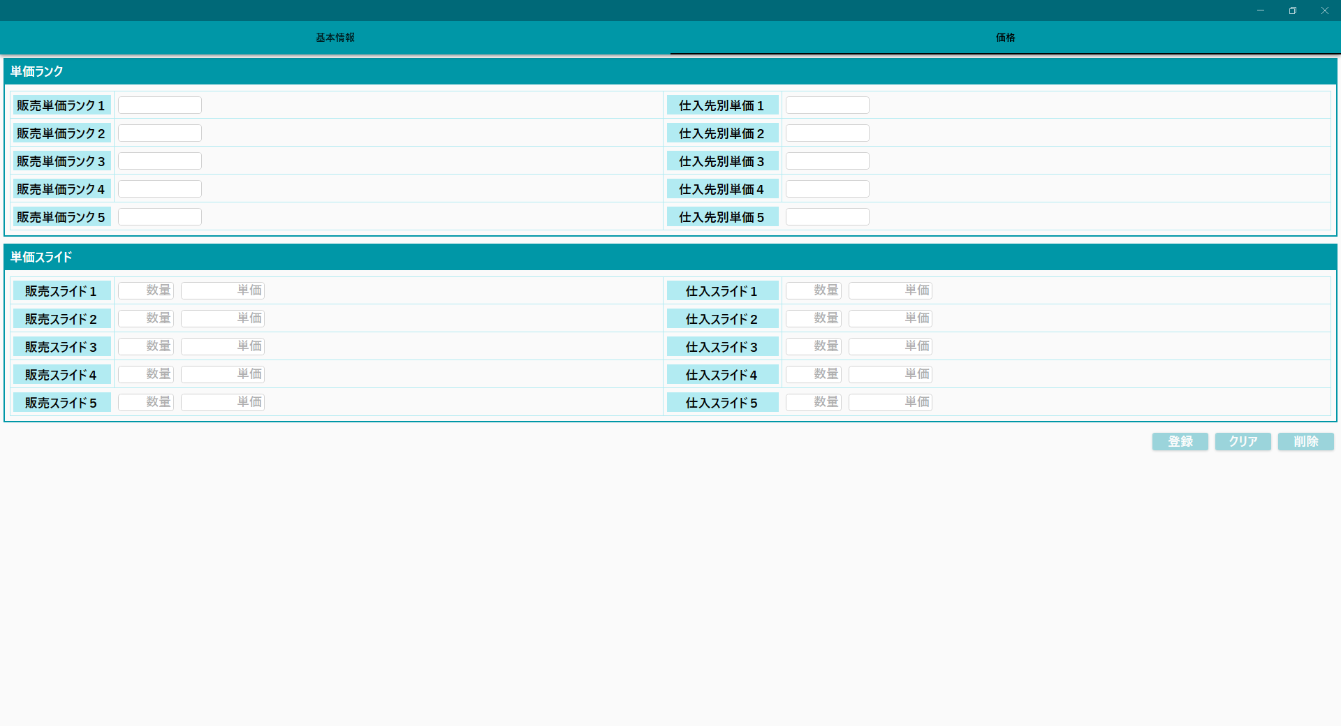 | 商品マスタ | 数量ごとの単価スライド登録を採用。 |